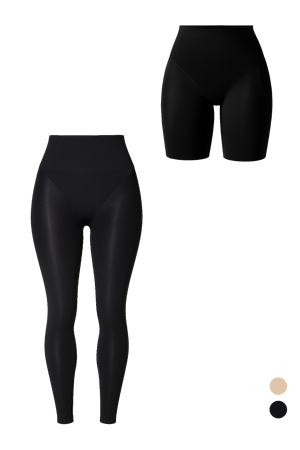 كلا القطعتين مصنوعتان من قماش فائق النعومة وقابل للتنفس، يجمعان بين فعالية الشد والمظهر غير المرئي – مثالي للاستخدام اليومي، المناسبات، أو بعد العمليات.