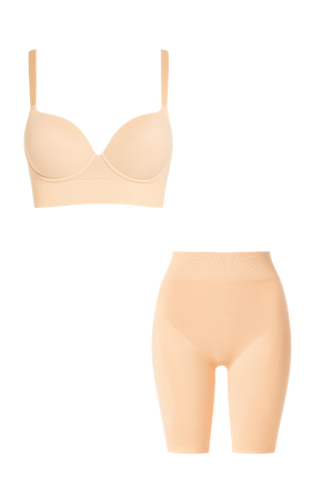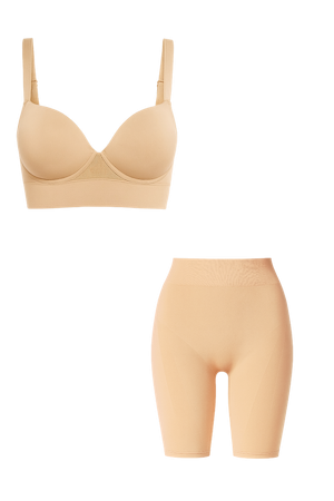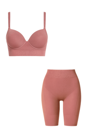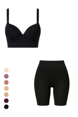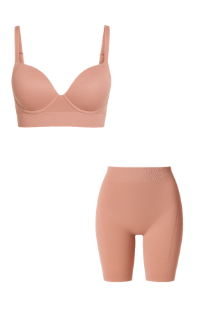 كلا القطعتين مصنوعتان من قماش نفس البشرة، بخاصية التهوية، الجفاف السريع، والملمس الفائق النعومة – ليمنحك قاعدة مثالية لأي إطلالة.