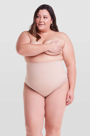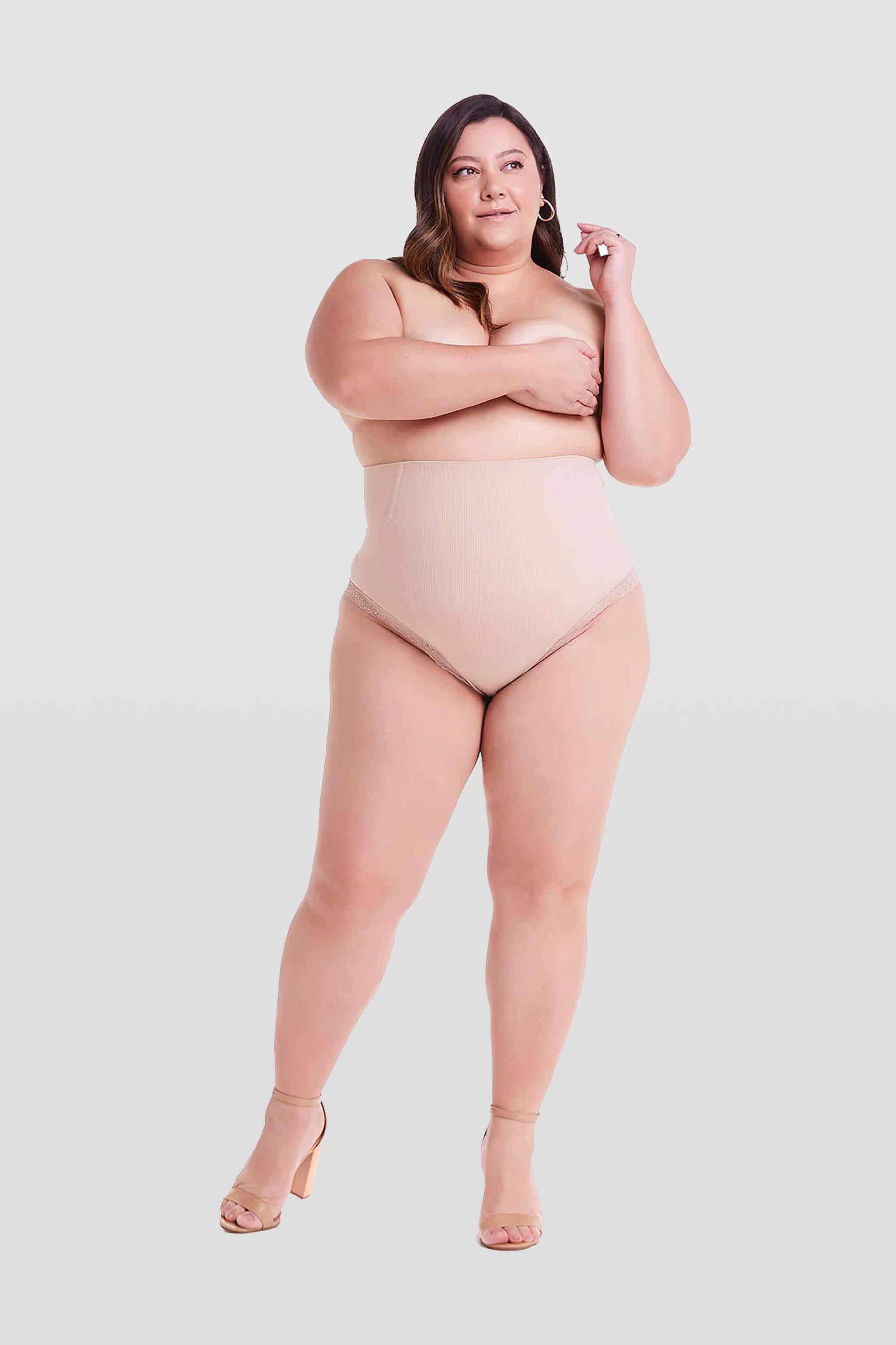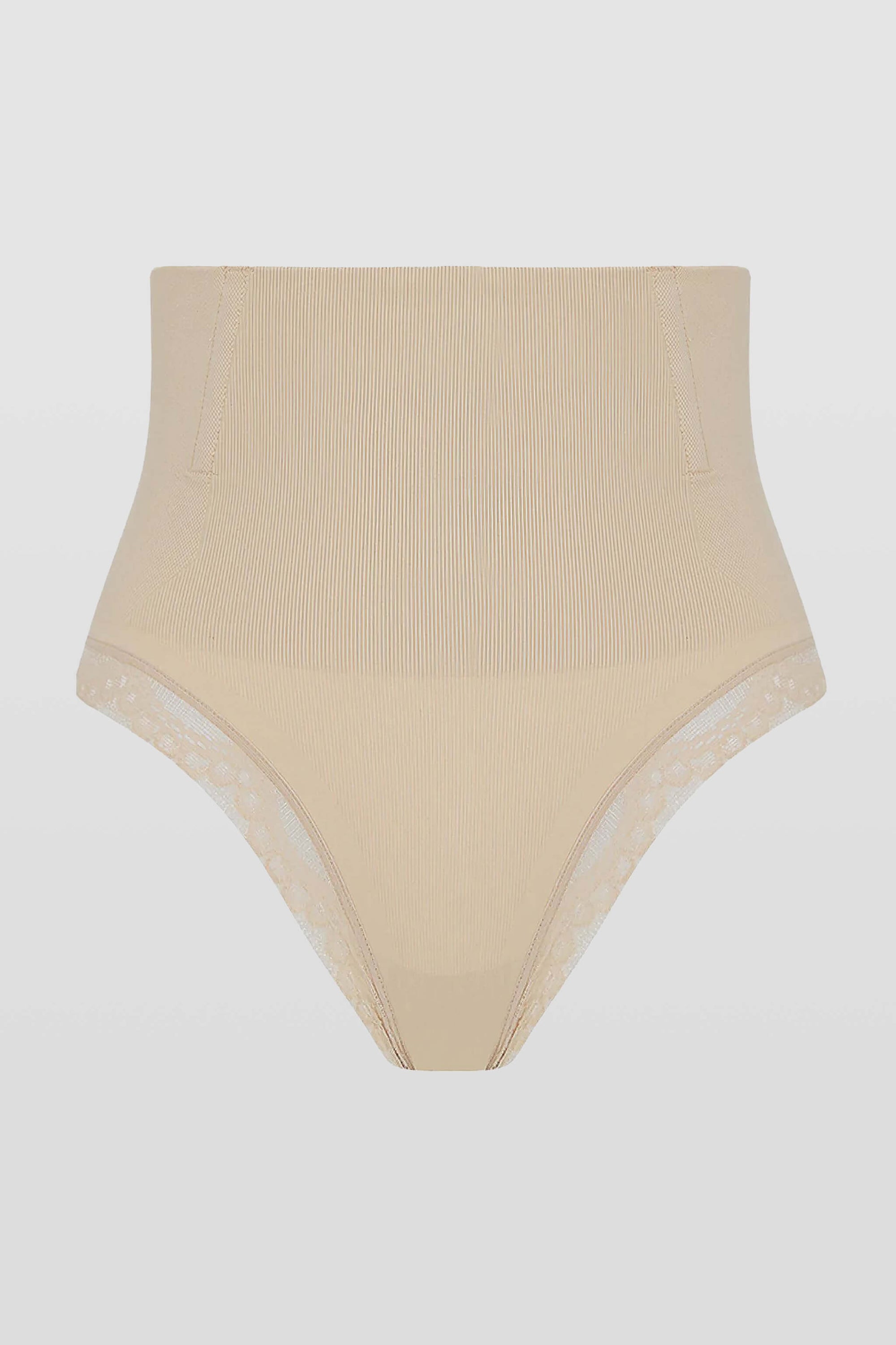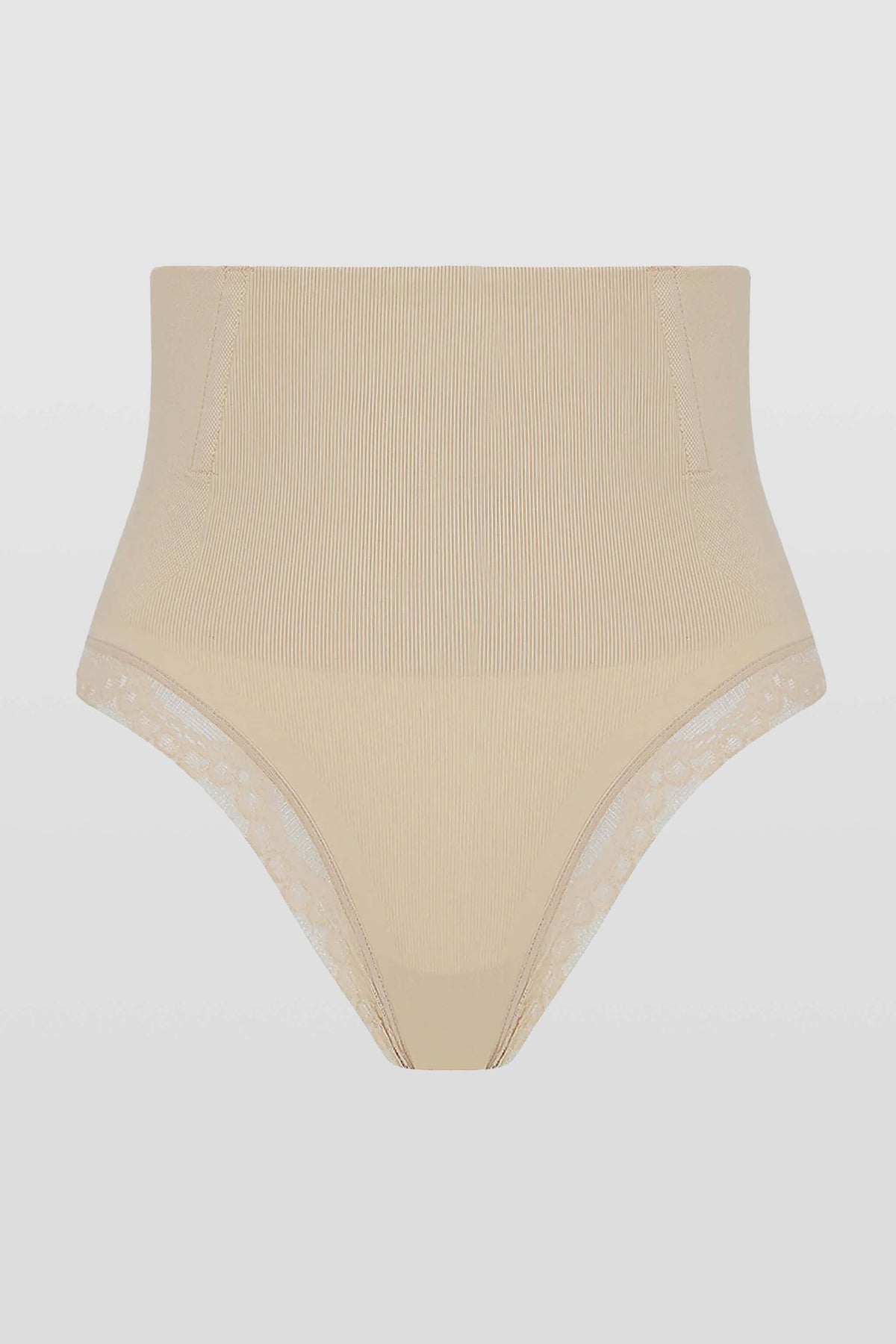 مشد سروال داخلي خصر مرتفع الدانتيل بتقنية الضغط.