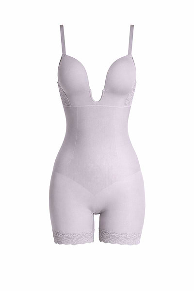 مشد جسم بتصميم حصري شورت يشد وينحت الجسم ويشكل الصدر مع اضافات بقماش لامع وملمس ساتان دون اي حواف جانبية لايظهر اسفل الملابس رائع ومثالي اسفل فساتين السهرة ذات الصدر او الظهر المكشوف.
