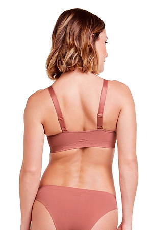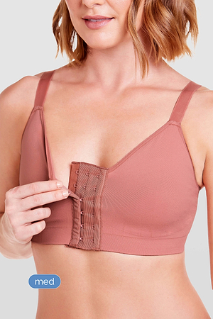 حمالة صدر بدعم مزدوج، وإغلاق أمامي، وفتحة رقبة أعمق.