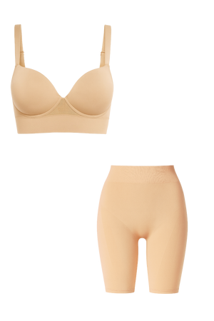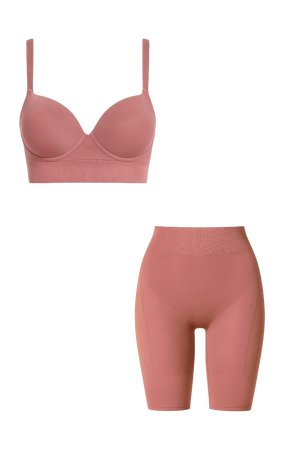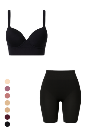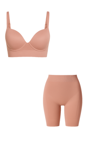 كلا القطعتين مصنوعتان من قماش نفس البشرة، بخاصية التهوية، الجفاف السريع، والملمس الفائق النعومة – ليمنحك قاعدة مثالية لأي إطلالة.
