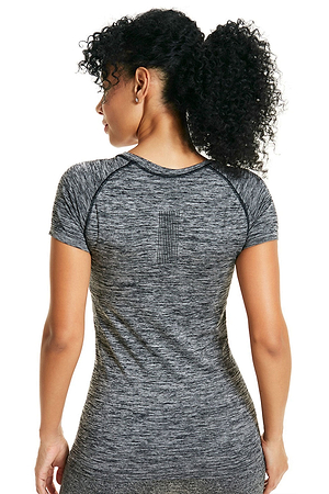 - تي شيرت بأكمام قصيرة مع تفاصيل رياضية وتصميم عملي من الخلف للتهوية أثناء التمارين.