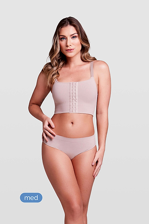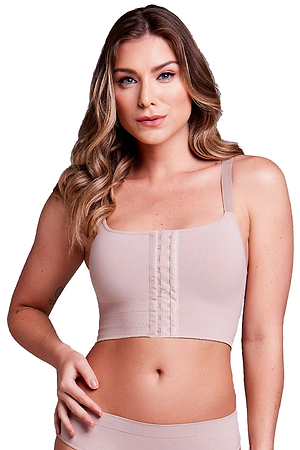 Post-surgery bra with double compression and 3 3-adjustment closure in the front. ThisThe