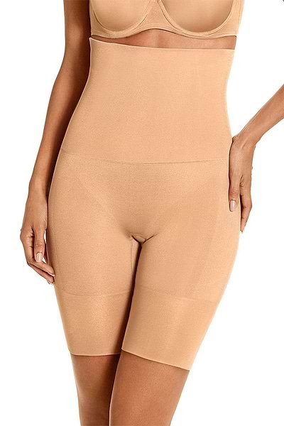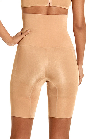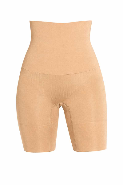MAKEUP SKIN Powder High Waist Shapewear Bermuda by Plie has an extra-fine fabric, with a soft touch and velvety shine, that guarantees the enhancement of your contours and shaping the butt with very light compression and absolute comfort. It’s provided with Super soft Sensil® polyamide and