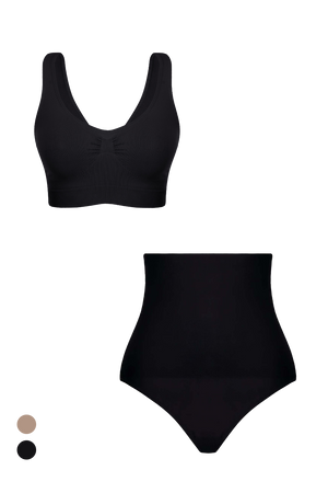 Crafted from breathable, anti-odor, and seamless microfiber, both pieces work together to shape your silhouette while offering a natural look and feel.
